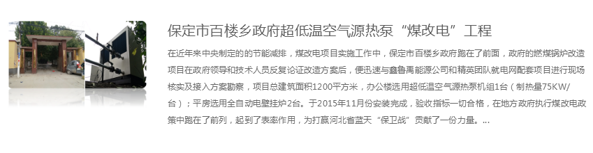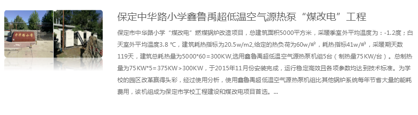 煤改電超低溫空氣源熱泵案例煤改電超低溫空氣源熱泵項目