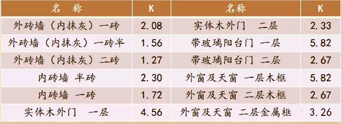 常用圍護結構傳熱系數K(W/(㎡.℃))