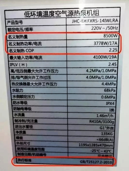 奉勸經銷商或消費者在選用產品時,注意銘牌的參數,標明低溫工況制熱量的,一般是空氣源熱泵采暖機組或低溫型的空氣源兩聯供機組。選擇熱泵類型非常重要,有的工程由于將熱泵類型選錯,造成長期壓縮機工作不停機,運行費用高但室內溫度難以滿足設計要求。