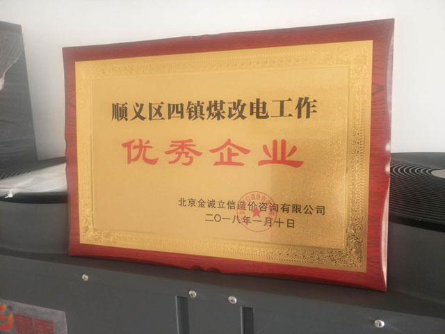 鑫魯禹超低溫空氣源熱泵廠家榮獲順義區(qū)四鎮(zhèn)煤改電工作優(yōu)秀企業(yè)