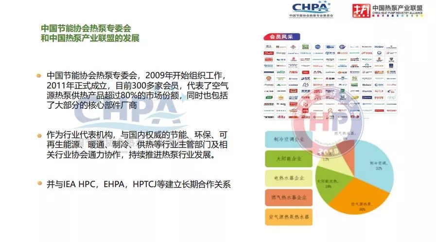 中國(guó)熱泵產(chǎn)業(yè)聯(lián)盟于2009年開(kāi)始在我國(guó)熱泵行業(yè)組織與空氣源熱泵產(chǎn)業(yè)相關(guān)的工作,2014年8月正式通過(guò)民政部批準(zhǔn),注冊(cè)為中國(guó)節(jié)能協(xié)會(huì)熱泵專委會(huì),是中國(guó)節(jié)能協(xié)會(huì)下設(shè)分支機(jī)構(gòu)之一。目前協(xié)會(huì)具有300多家會(huì)員,代表了空氣源熱泵供熱產(chǎn)品超過(guò)80%的市場(chǎng)份額,同時(shí)也包括了大部分核心部件廠商。中國(guó)節(jié)能協(xié)會(huì)熱泵專業(yè)委員會(huì)作為行業(yè)代表機(jī)構(gòu),與國(guó)內(nèi)權(quán)威的節(jié)能、環(huán)保、可再生能源、暖通、制冷、供熱等行業(yè)政府主管部門及相關(guān)行業(yè)協(xié)會(huì)通力協(xié)作,持續(xù)推進(jìn)熱泵行業(yè)的發(fā)展。與此同時(shí),專委會(huì)還與IEA HPC、EHPA、HPTCJ等國(guó)際產(chǎn)業(yè)機(jī)構(gòu)建立長(zhǎng)期合作關(guān)系。