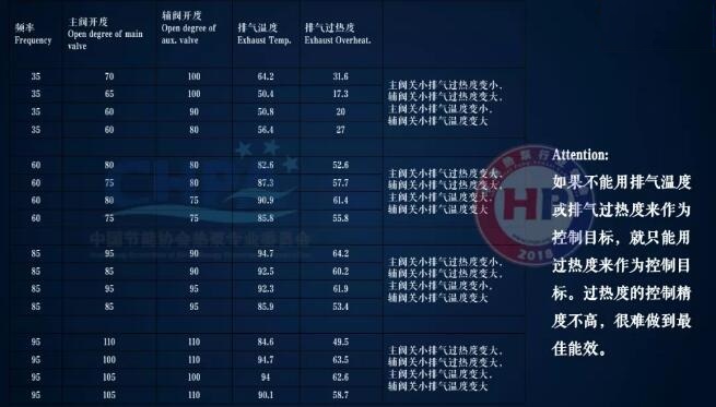 在不同的頻率下,開主閥或關主閥及輔閥,得出的結論是相反;用排氣溫度,希望從控制角度出發。因過熱度范圍小,如果單純控制,其精度不是很好。如果說我們想要控制得更好一些,用排氣溫度和排氣過熱度。此外,閃蒸器使用閃蒸器容易要做到發揮系統最佳性能;最大好處是成本低。