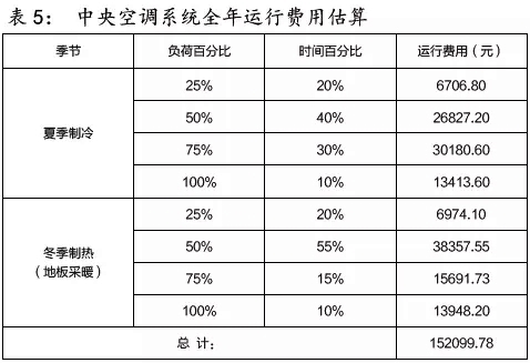 根據(jù)該項目特點,中央空調(diào)系統(tǒng)運行時間:制冷季按100天、采暖季90天計算;運行時間:制冷季空調(diào)每天運行12小時,采暖季每天運行14小時;電費按0.9元/kWh(商用電)計算。